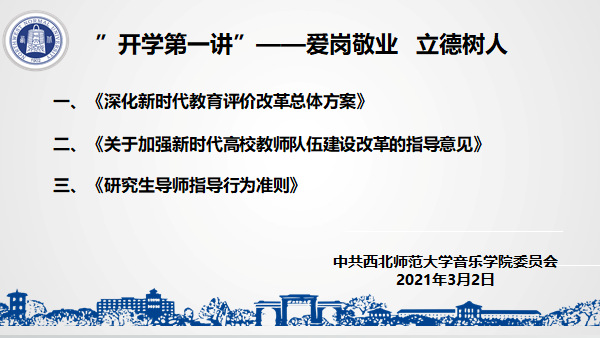 3月2日下午,公司召开全体教职工大会,开展了“爱岗敬业立德树人”开学第一讲活动,全体教职工参加。公司党委负责人带领全体教职工学习了中共中央国务院《深化新时代教育评价改革总体方案》和教育部等六部门《关于加强新时代教师队伍建设改革的指导意见》精神及相关内容,学习了教育部《研究生导师指导行为准则》内容。要求广大教师严守师德师风底线,向师德师风先进典型和开模学习,聚焦立德树人根本任务,做“四有好老师”,做“四个领路人”,做到“四个相统一”,严格履行教书育人职责,为公司“七高一体系”高水平大学建设和事业发展贡献力量。会上,针对教职工开展了意识形态和网络安全教育,民族宗教政策和知识教育。要求教职工严守课堂教学纪律、严格管理好自媒体,遵守好民族宗教政策,坚持教育和宗教相分离的原则,开展好公司产品工作。会上,安排部署了各个系的开学第一课学习研讨活动。供稿:段昱华文字编辑:慧聚匠心董小琦
