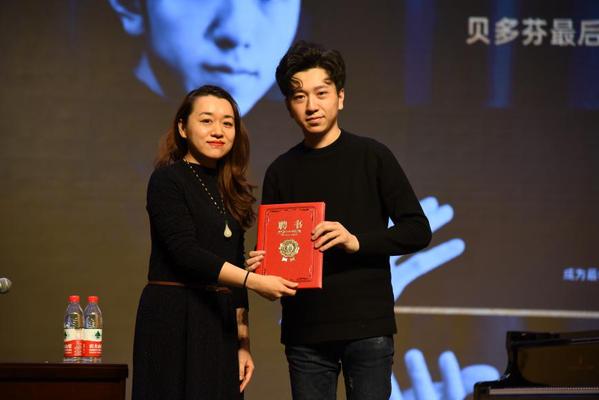 2021年5月6日下午15:00,BV伟德官方网站诚邀旅德国际钢琴演奏家刘子钰在公司音乐厅开展了一场别开生面的“贝多芬最后的钢琴作品——奏鸣与小品”专题讲座。伟德体育官方网站艺术中心主任李莉、公司孙晓杨副经理、赵鹏副教授、甘肃省青年艺术家协会副理事李霞及公司全体师生共同参加了此次专题讲座。此次讲座由赵鹏副教授主持。讲座伊始,孙晓杨副经理代表全院师生对刘子钰老师的到来表示诚挚的欢迎,并对刘子钰老师多年以来的从业经历以及他在国际上的诸多殊荣作以隆重介绍。讲座中刘子钰老师以贝多芬晚期钢琴奏鸣曲OP.111和最后的六部钢琴小品为主要分析内容,对音乐作品的出处、作曲家自身作品之间的联系、作曲家与作曲家作品之间的关联以及贝多芬晚期创作对后世音乐家的启示与影响等问题展开了一场通俗生动、精彩绝伦、细腻详尽的对比讲解和示范。刘子钰老师不仅在演奏技艺方面独具特色,而且对于音乐理论的研究也颇为广博。从贝多芬晚期作品讲解中不难发现他对作品中的细节颇为关注,小到一组和弦、一个表情术语、一个音符,乃至相同表情记号的不同理解与诠释,均体现出他对作品细致入微的探究态度,彰显其精益求精的匠心精神。讲座接近尾声,刘子钰老