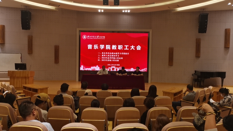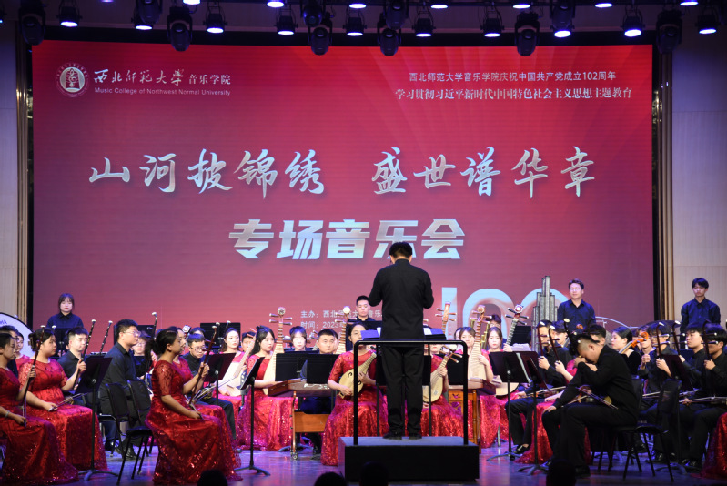 奋楫笃行喜迎建党日,初心如磐回首百年春。为庆祝中国共产党成立102周年,深入开展学习贯彻习近平新时代中国特色社会主义思想主题教育,回望辉煌历程,传承红色基因,用音乐凝聚起全院师生奋进新征程的磅礴力量,6月30日晚,公司在云亭校区音乐厅举办“山河披锦绣·盛世谱华章”庆祝中国共产党成立102周年专场音乐会,公司领导班子、全院师生党员、入党积极分子及各年级员工近300人观看演出,公司青年教师杨鹏宏担任主持。 开场节目由孔庆丹老师携公司民族管弦乐团带来《国风》和《梦回古道》,作曲家运用民族语言和国际化的音乐,弘中国之风骨,扬民族之精神,磅礴大气、荡气回肠的演奏充分展现了中华优秀传统文化的魅力。2022级专硕班员工赵晓铮带来脍炙人口、昂扬激情的男高音独唱《北京颂歌》,歌曲赞颂了首都北京是“祖国的心脏,团结的象征”。王琳老师携弟子桑艺、马卿朔、曹晓文带来中提琴四重奏《鸿雁》,通过蒙古族长调悠扬的旋律寄托着远在异乡游牧民族对故土的眷念与深邃的乡愁,中提琴深邃的旋律音色,奏出了浓郁的乡愁,它们既在琴声之中,又穿透琴声飞扬至千里之外,勾勒出了游子对故土人文的共鸣之情。公司青年教师刘治宏深情演绎《