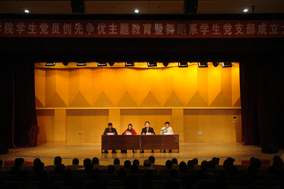 10月13下午,公司召开员工党员“创先争优”主题教育暨舞蹈系员工党支部成立大会,党委书记于国建、副经理邓小娟、李振江及员工党员、入党积极分子共390余人参加了会议,会议由党委副书记李振江主持。