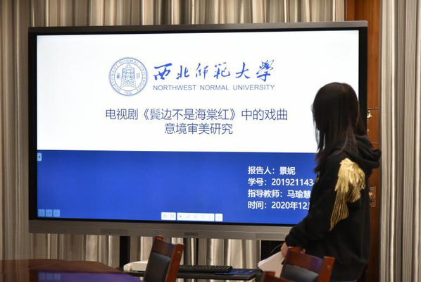 景妮的论文题目是《电视剧<鬓边不是海棠红>中的戏曲意境审美研究》,她以占主导地位的电视媒体对转化和吸纳作为客体的戏曲艺术元素为角度,对《鬓边不是海棠红》中出现的戏曲剧目从意境理论的角度进行具体阐述,总结归纳出戏曲艺术在剧中的用途和主要功能。
