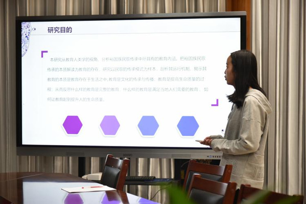 铁书毓的论文题目是《泛教育理论视角下裕固族民歌传承研究》,她将从教育人类学的视角,分析裕固族民歌传承中所具有的教育内涵。她的研究以民歌的传承模式为样本,剖析其运行机制,揭示其教育的本质,从而反思什么样的教育是完整教育、是满足当地人需要的教育,如何让教育起到提升人的生命质量。