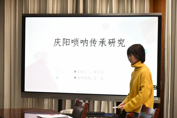 段人凤的论文题目是《庆阳唢呐传承研究》,她将通过对庆阳唢呐传习所教学活动的观察与调查,对其不同的传承方式进行比较研究,从教育人类学的角度对庆阳唢呐的三个传承场域进行详细论述,多维度体现庆阳唢呐对人的发展所产生的影响。
