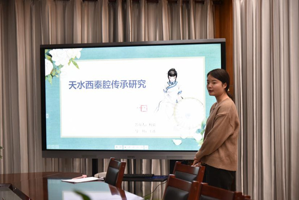 杨毅的论文题目是《天水西秦腔传承研究》,她将从秦腔的历史渊源、戏曲文化、艺术特征、传承发展、戏曲艺术进课堂这几个维度进行分析,揭示文化、教育及其相互关系的本质内涵。