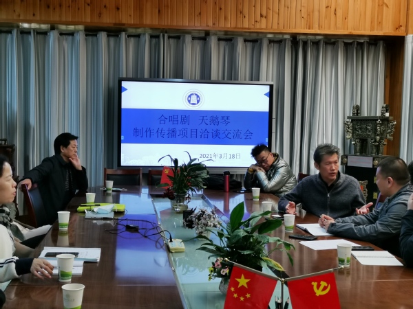 3月18日上午,BV伟德官方网站与甘肃飞天电子音像出版社有限责任公司之间的一场座谈会如约而至。就公司王文澜教授作词,陈虎、胡文慧教授作曲的优秀原创跨界融合合唱剧《天鹅琴》如何打造电影音乐剧一事,双方充分交换了意见。
