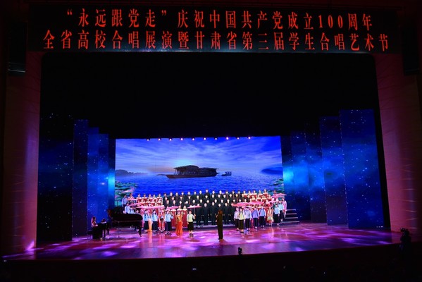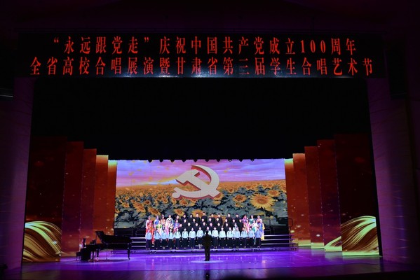 本场合唱音乐会采取线上和线下相结合的方式进行,共分为序、上篇•砥砺前行、下篇•不忘初心及尾声四个部分。伟德体育官方网站、兰州大学、西北民族大学、兰州理工大学等八所在兰高校参加了现场展演,甘肃中医药大学、天水师范公司、河西公司、陇东公司、民族师范公司等多所高校通过云展演的方式与在场高校共同放声高歌,以歌化情、以情传意,共祝党的百年华诞 。