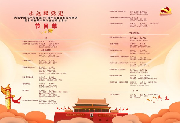 “颂歌献给党,奋进新征程”,2021年6月19日晚7:30分,由省委宣传部、省委教育工委、省教育厅主办,伟德体育官方网站承办,省内各高校协办的“永远跟党走”——全省高校庆祝中国共产党成立100周年合唱展演暨甘肃省第三届员工合唱艺术节活动在兰州音乐厅隆重举行。出席本次活动的领导有:中共甘肃省委副书记孙伟同志,中共甘肃省委常委、省委宣传部部长王嘉毅同志,省人大、省政协、省直有关部门以及在兰高校负责同志,在兰高校师生和部分中小学教师代表。