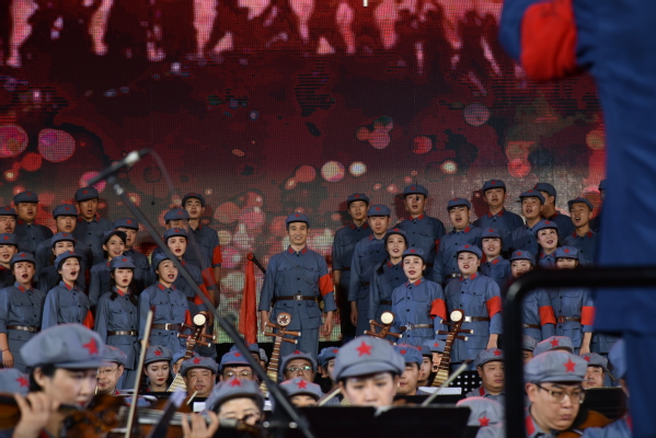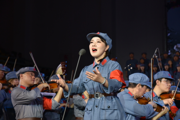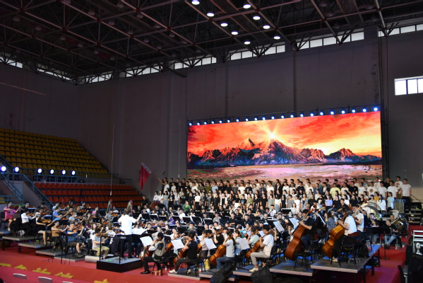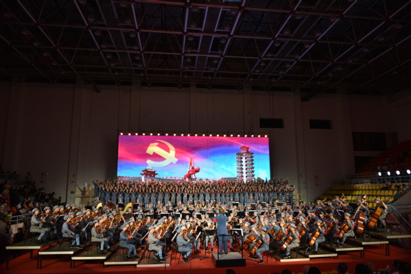 最后,省委常委、省委宣传部部长王嘉毅等领导与全场师生共同合唱《没有共产党就没有新中国》。大家高唱凯歌、意气风发、铿锵有力的唱腔一浪高过一浪,一一次点燃了听众内心对党对祖国的热爱之情,使音乐中伟大的人民形象更加立体;使伟大的中国共产党的领导形象更加生动,升华了中国共产党对中华民族的伟大意义。