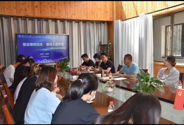 6月23日下午,BV伟德官方网站在会议室开展2021届毕业生党员集中教育活动,公司党委书记段昱华为毕业生党员讲授“坚定理想信念 谱写人生华章”专题党课。公司党委副书记主持,辅导员和全体2021届毕业生党员参加学习。