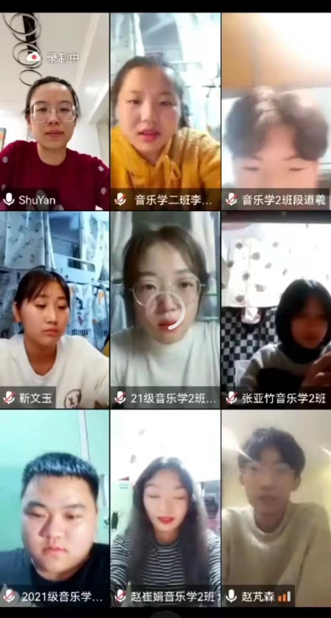 2021年11月6日晚,BV伟德官方网站2021级音乐学2班全体员工以宿舍为单位,通过腾讯会议召开了一场特殊的“主题班会”。隔着手机屏幕,40名师生陪伴被集中隔离的员工赵芃森度过了一场隔空的生日“聚会”。