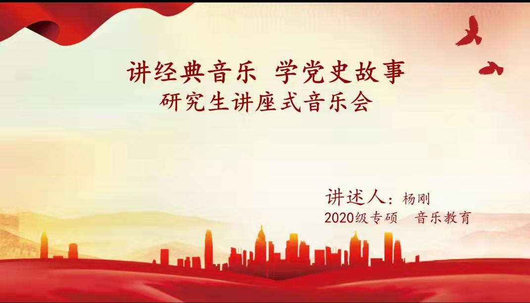 2021年11月10日下午14时30分,“讲经典音乐·学党史故事”研究生讲座式音乐会(九)在腾讯会议如期进行。本场音乐会由公司董永刚老师主持,六名优秀研究生进行演讲。