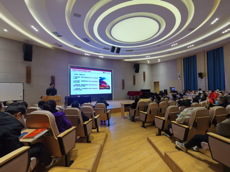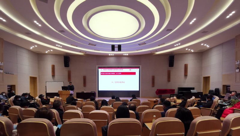 专题辅导报告会上,史小宁教授从坚持唯物史观和正确党史观的重要意义;两个“历史决议”的制定背景、主要内容和重要意义;党的十九届六中全会《决议》产生背景、主要内容、经验启示三个部分做了宣讲。史小宁讲到党的十九届六中全会重要成果就是通过了《中共中央关于党的百年奋斗重大成就和历史经验的决议》,《决议》的重要意义即党的百年奋斗从根本上改变了中国人民的前途命运、开辟了实现中华民族伟大复兴的正确道路、展示了马克思主义的强大生命力、深刻影响了世界历史进程、锻造了走在时代前列的中国共产党。就《决议》中党百年历史之新民主主义革命时期、社会主义革命和建设时期、改革开放和社会主义现代化建设新时期、中国特色社会主义新时代四个历史时期党的任务、取得的重大成就及其历史意义做了深刻阐述。对《决议》中的“十个明确”、“十个坚持”、“两个确立”做了详细阐述。史小宁教授讲到《决议》是一篇光辉的马克思主义纲领性文献、是新时代中国共产党人牢记初心使命、坚持和发展中国特色社会主义的政治宣言,是以史为鉴、开创未来、实现中华民族伟大复兴的行动指南,必将激励全党在新时代新征程上赢得更加伟大的胜利和荣光。