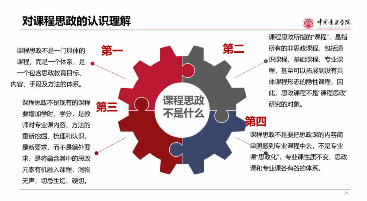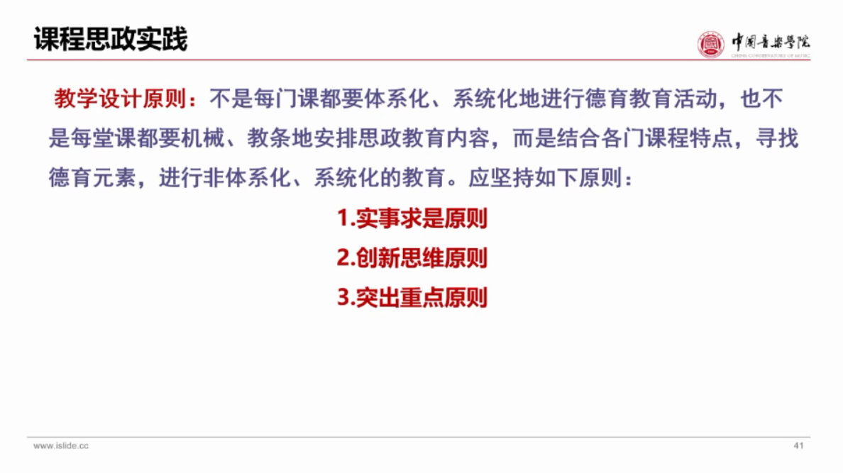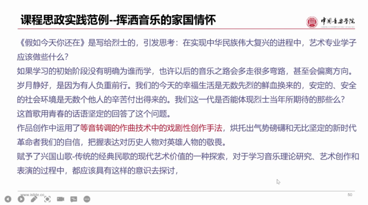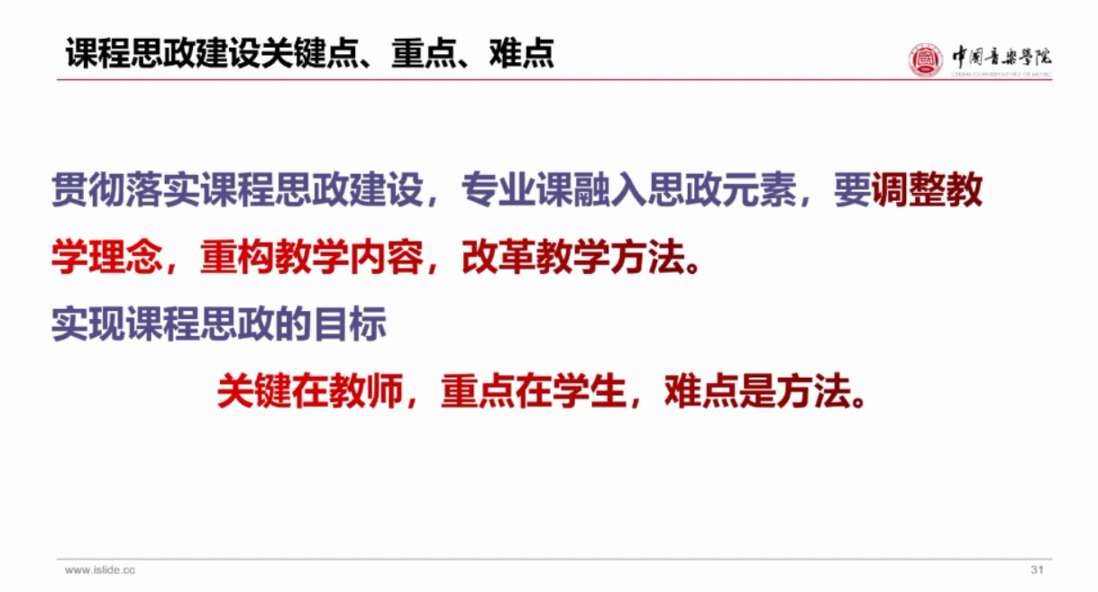 关于课程思政建设重点难点,佟教授总结到:关键在教师,教师要探求活的思政,而不是刻板的思政,要坚持课程设计,课程思政与教研活动有机融合;重点在员工,难点是方法,要以红色创作、红色曲目为前提,拓展至价值引领、家国情怀。