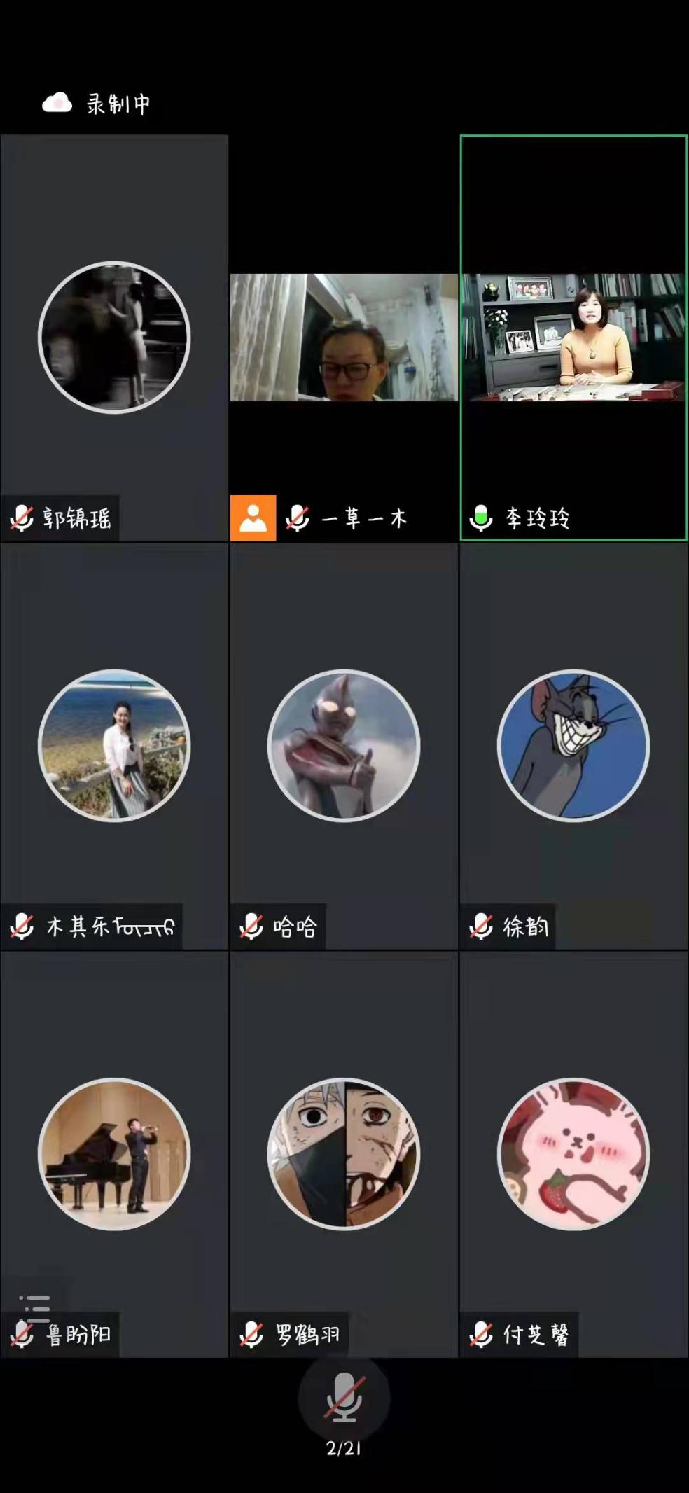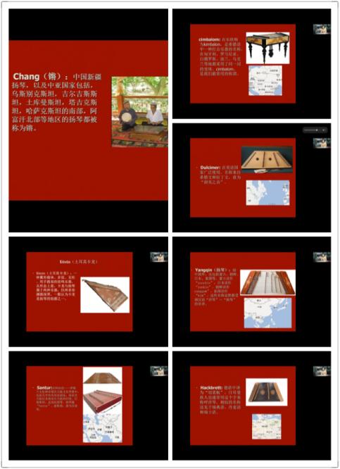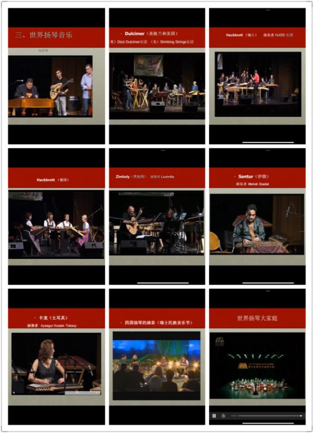 在线将近200名师生纷纷对李老师的“到来”表示热烈欢迎,郜鹏老师为大家详细介绍了李老师多年来从事音乐教育的成就。在本次讲座作中,李老师用生动的图片和视频以及清晰明了的示范演奏,主要从以下三个方面向我们介绍了世界各地的扬琴艺术。