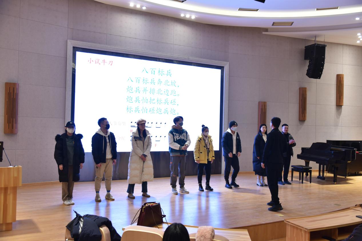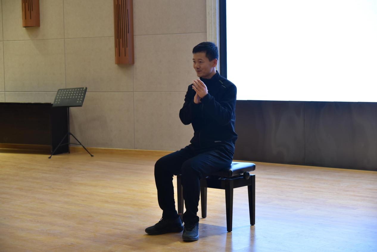 首先,刘老师先以一首《拉德斯基进行曲》作为背景音乐,带领同学们进行了热身活动。大家在跺脚、拍手、响指等一系列动作中感受到肢体动作与音乐节奏之间的紧密联系。现场气氛十分活跃。