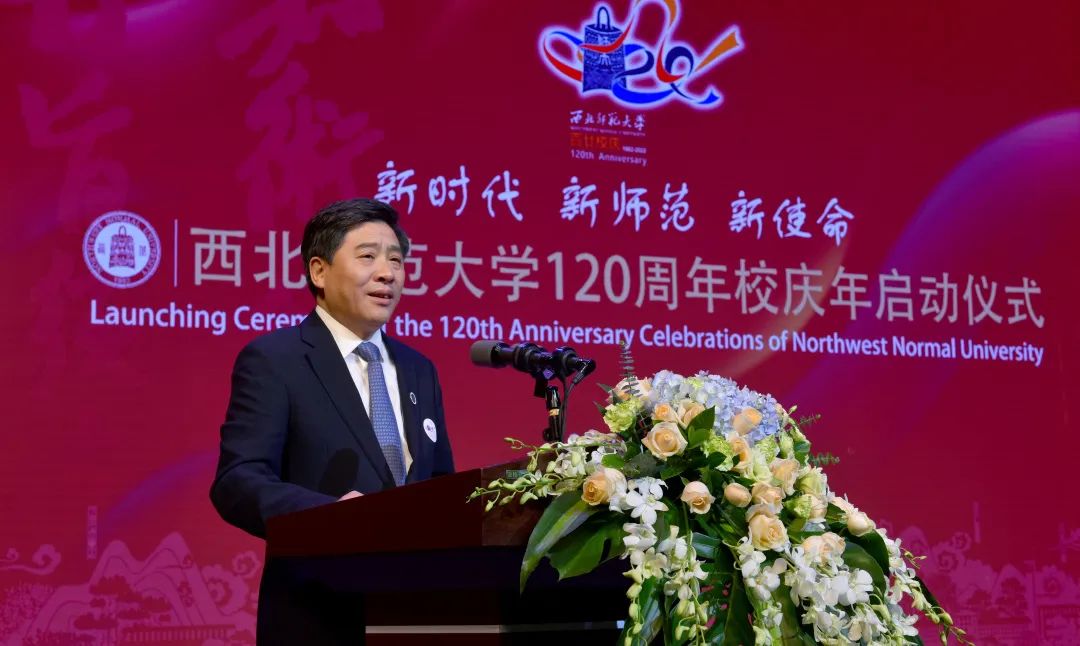 在仪式中,党委书记张俊宗发表致辞,他代表公司全体师生向社会各界、海内外广大员工发出诚挚邀请,期待大家惠临公司,共襄盛举,擘画未来。他说,肇始于1902年京师大学堂师范馆的伟德体育官方网站,作为西北高等教育的“拓荒者”、教师教育研究的“先行者”、卓越教师培养的“引领者”、新时代“新师范”教育的“倡导者”,见证、参与和推动了中国高等教育改革发展的历史进程。校园的沧桑巨变是伟大祖国繁荣发展的时代缩影,事业的发展进步是西北师大人不忘初心、牢记使命的生动注脚。119年来,公司始终高举爱国主义伟大旗帜,传承着与祖国风雨同舟、同向同行的精神追求;始终赓续师范教育的初心使命,坚守着为基层立教兴业、强筋壮骨的优良传统;始终勇担服务社会的责任担当,开创着为西部贡献力量、建功立业的生动实践。