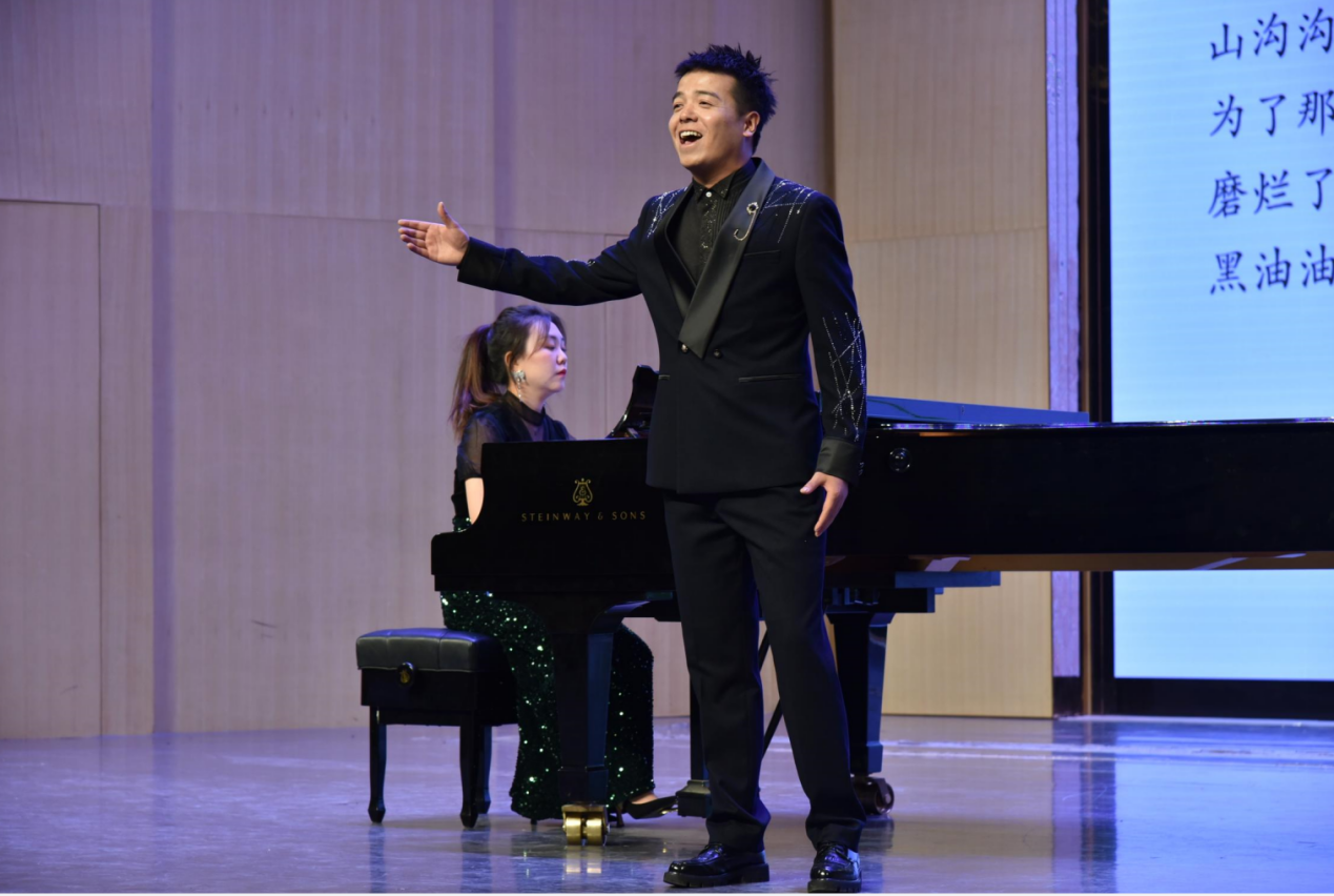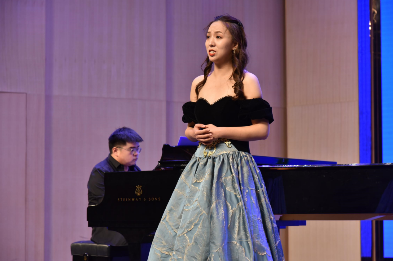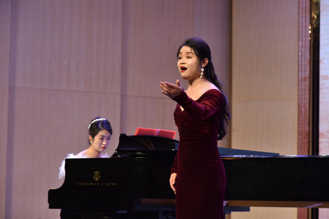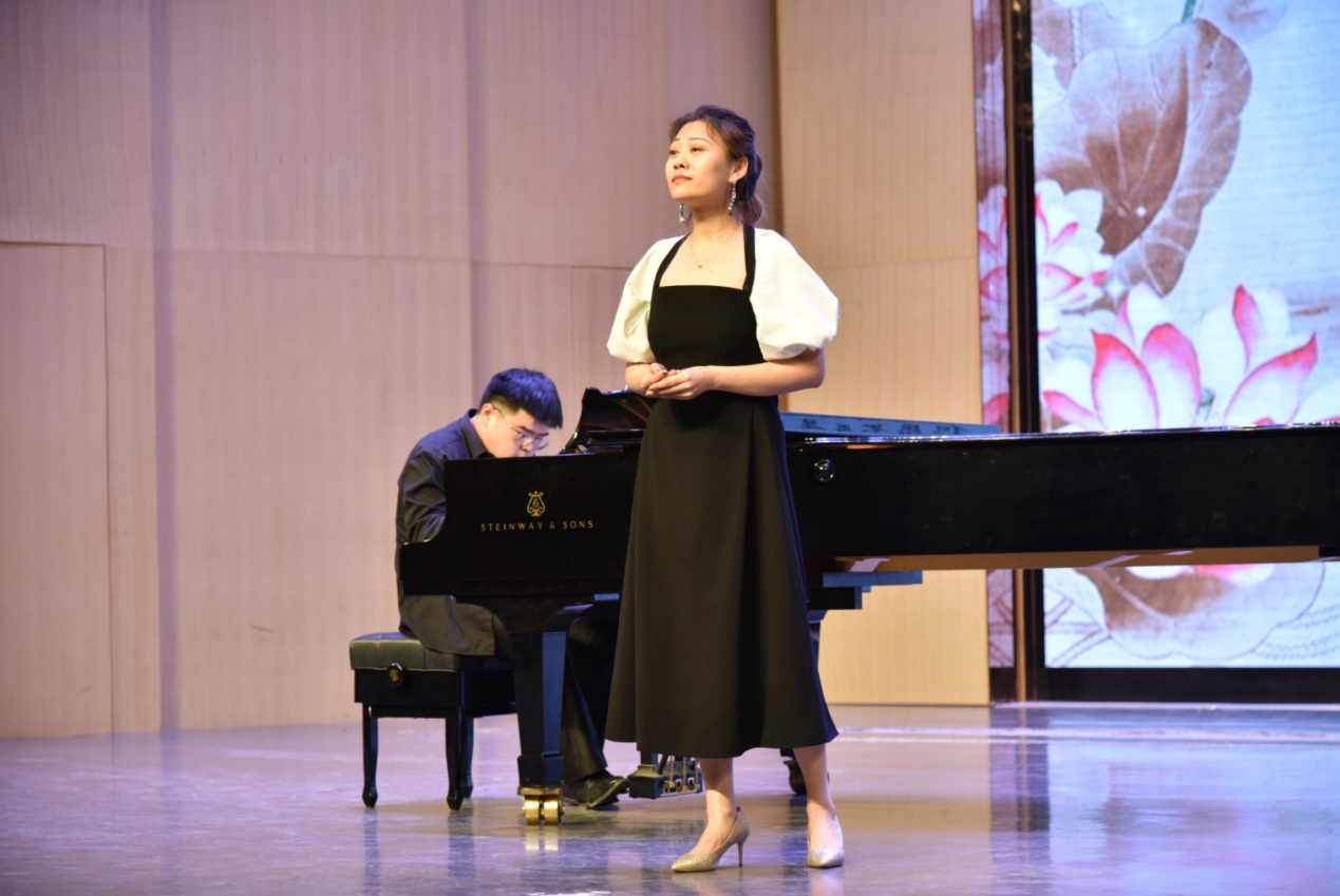 《思乡》,韦瀚章词,是黄自先生一首极富诗情画意的抒情歌曲。《帕米尔,我的家乡多么美》,由瞿踪词,郑秋枫曲,歌曲充满舞蹈的律动感。研究生余辉芳的演唱展现出草原上繁荣兴盛的景象。