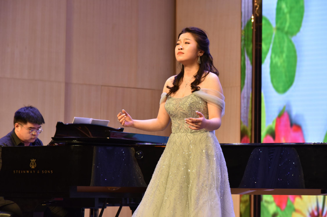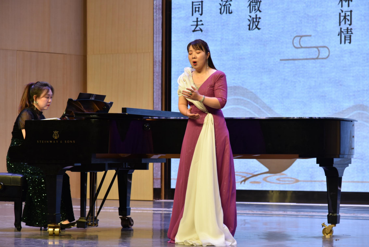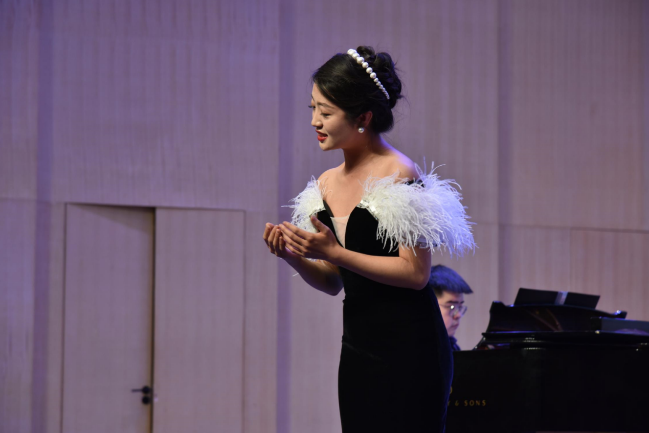 富有古诗词韵味的《春思曲》由韦瀚章词,黄自曲,歌词清新秀丽,典雅含蓄。《明月干里》由贺东久词,印青曲。这首美声歌曲融入了不少的民族元素,歌词优美,曲调悠扬。研究生王润晔轻柔地表现出了歌曲旋律中的婉转与抒情。