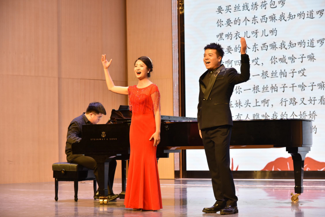 《越人歌》,一首古词新曲的楚辞作品,刘情曲。是一首体现不同民族和谐共处状况的爱情歌曲,充满浓厚的地域色彩。《桥》由于之词,陆在易曲,创作于1981年,是陆在易“家乡三部曲”作品——《桥》《家》《盼》的其中一首。研究生张金顺深情地演唱将歌曲所表达的美感和丰盈展现出来。