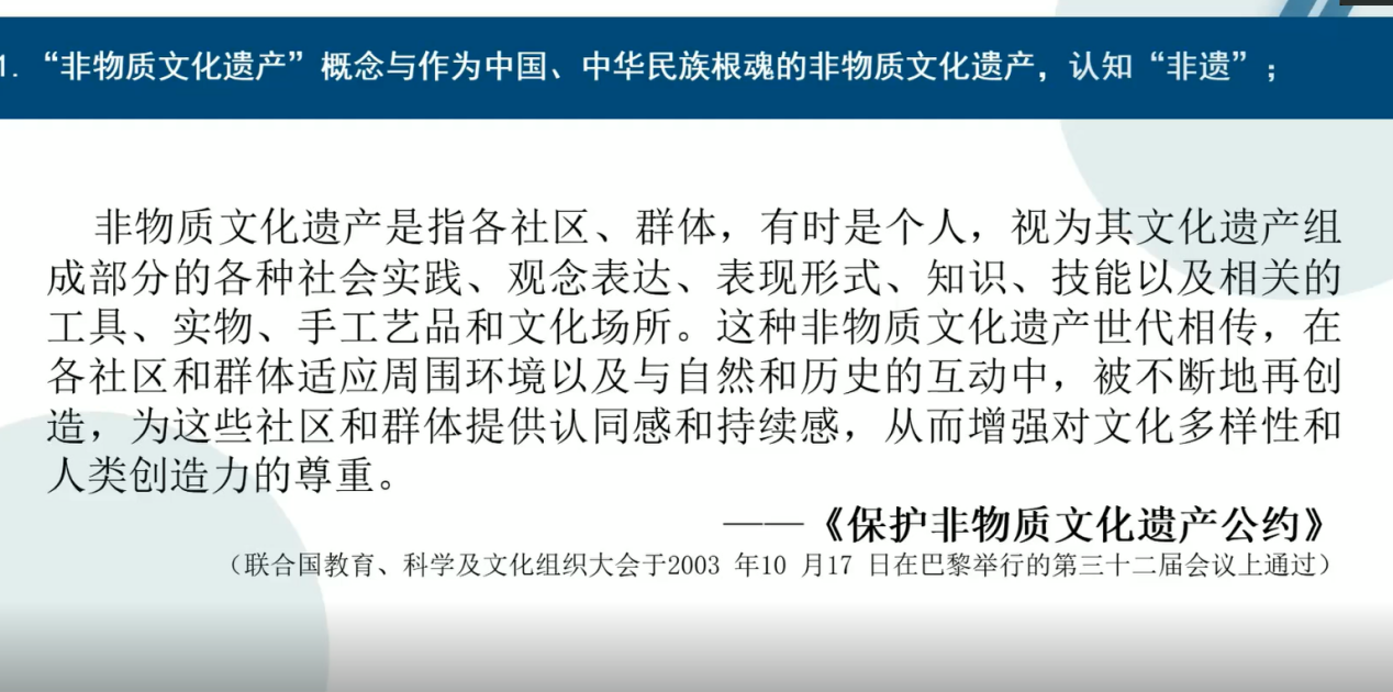 最后,郑教授谈到了保护非遗的意义,保护非物质文化遗产是文化发展的重要战略,是维护世界文化多样性、促进人类社会健康发展的需要。文化遗产的力量,需要重识(释),才能实现有序传承、有效传播。要在我们现实生产生活实践中、行为方式中、价值判断中,始终绷紧确立中华文化立场,确立中华民族共同体价值观这根弦,只有这样,才能更好地为社会的高质量发展做出更大的贡献,才能不断为中华民族的伟大复兴添砖加瓦。