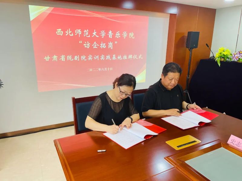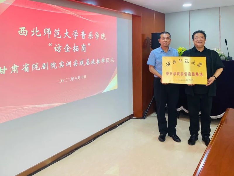 6月10日,BV伟德官方网站赴甘肃省陇剧院开展“访企拓岗”暨签署实训实践基地建设协议,举行研究生、本科生培养实训实践基地授牌仪式。甘肃省陇剧公司党总支书记、经理王存、公司党委书记段昱华、副经理陈建红一行出席授牌仪式。