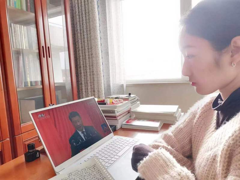 研究生张梦怡:“在报告中,习近平总书记明确指出中国式现代化的本质要求是:坚持中国共产党领导,坚持中国特色社会主义,实现高质量发展,发展全过程人民民主,丰富人民精神世界,实现全体人民共同富裕,促进人与自然和谐共生,推动构建人类命运共同体,创造人类文明新形态。我们生逢盛世,实现梦想的前景一片光明,更是要珍惜这来之不易的一切,脚踏实地,不忘初心,让青春在全面建设社会主义现代化国家的火热实践中绽放绚丽之花。”