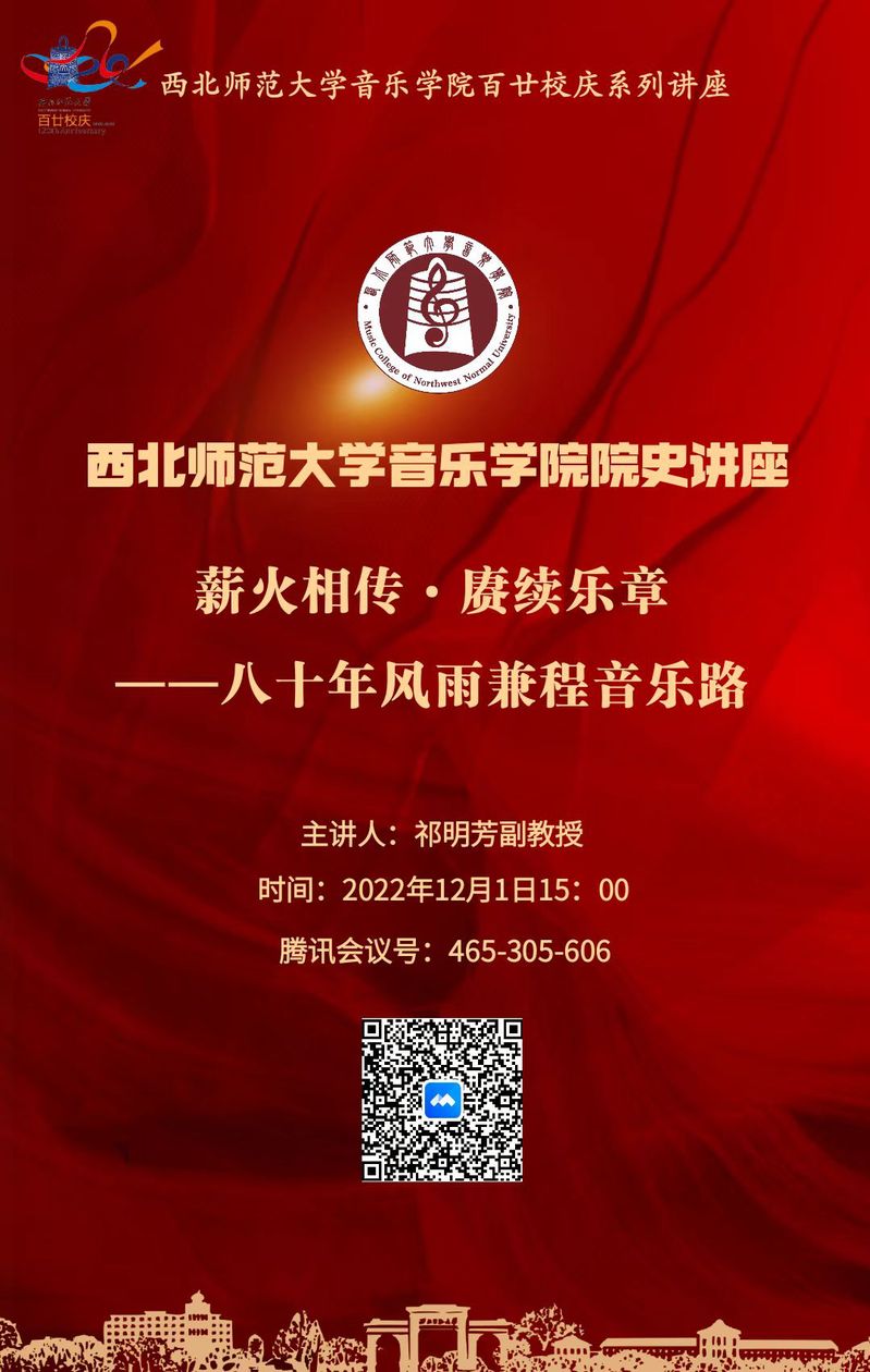 忆往昔峥嵘,迎百廿校庆。学习贯彻党的二十大精神,凝心聚力谱写BV伟德官方网站发展新篇章。值伟德体育官方网站120周年校庆来临之际,公司特邀祁明芳副教授于12月1日15:00通过腾讯会议,为BV伟德官方网站全体师生开展了“薪火相传·赓续乐章——八十年风雨兼程音乐路”BV伟德官方网站院史专题讲座。旨在回望八十多年来BV伟德官方网站根沃水塔山下,坚守初心、笃定前行,潜心发展西部音乐教育的历史进程,了解校史校情、院史院情,传承校风校训,增强师生爱校爱院、荣校荣院意识,不断提升归属感和认同感,立志为公司公司的未来再创辉煌!