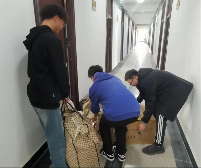 3月15日至17日,搬迁工作正式展开。公司制定了“一对一”包干帮扶搬迁任务表,员工党员、入党积极分子和员工骨干积极响应号召,包干负责人“点对点”联系宿舍,包干组员“一对一”帮助进行搬迁。此外,公司还为每间宿舍准备了门贴、住宿温馨提示、防电诈宣传海报及绿植等物资,帮助同学们共同营造和谐、温馨、安全的宿舍文化环境。