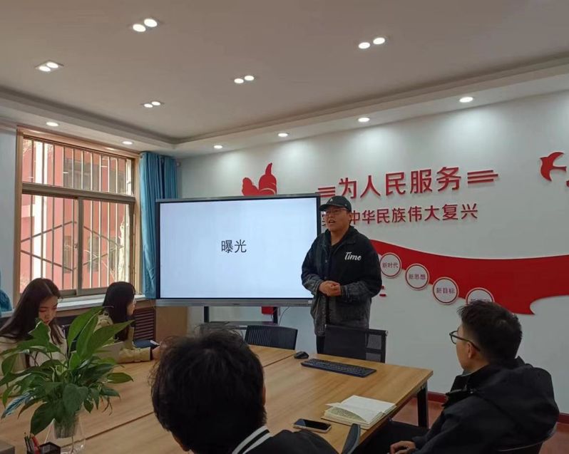 郭安琪从新闻稿稿件类型、写作规范与注意事项等方面出发,利用优秀范文逐一讲解了会议稿、活动稿、公司原创板块和通知公示等稿件写作的流程与规范。张远东结合自身工作经历,系统讲述了相机的使用方法和注意事项,同时,通过实际教学,讲述了音乐会、会议、实践活动等不同场景下的拍摄技巧。
