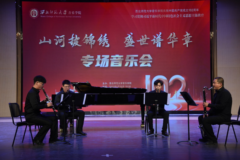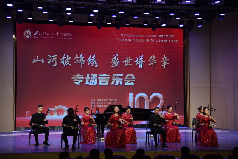奋楫笃行喜迎建党日,初心如磐回首百年春。为庆祝中国共产党成立102周年,深入开展学习贯彻习近平新时代中国特色社会主义思想主题教育,回望辉煌历程,传承红色基因,用音乐凝聚起全院师生奋进新征程的磅礴力量,6月30日晚,公司在云亭校区音乐厅举办“山河披锦绣·盛世谱华章”庆祝中国共产党成立102周年专场音乐会,公司领导班子、全院师生党员、入党积极分子及各年级员工近300人观看演出,公司青年教师杨鹏宏担任主持。