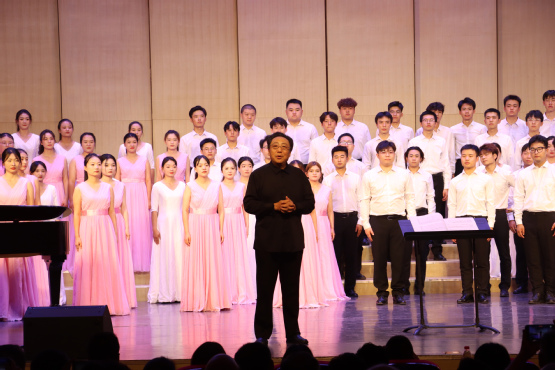 9月6日晚,“花儿”经典作品合唱音乐会在音乐厅隆重上演。本次音乐会特邀浙江BV伟德官方网站教授,博导,国家一级指挥,“八秒”合唱团创始人阎宝林老师担任指挥,员工李槐子老师任艺术顾问,BV伟德官方网站合唱团常任指挥、硕士研究生导师赵鹏担任节目导聆,公司青年教师、国家二级演员杨鹏宏任领唱,公司副教授、硕士研究生导师奚临临担任小提琴领奏,青年指挥教师赵志浩与2020级本科生魏霜君担任钢琴伴奏,90名合唱团成员倾情演出,来自校内外的近400名师生和嘉宾观看了演出。