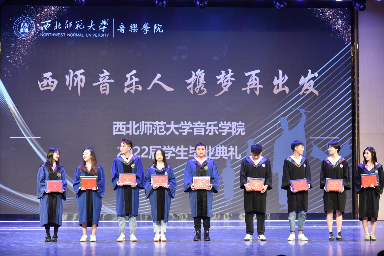 麦浪金黄成熟时,凤凰花开离别季。师大的一草一木见证着学子们的成长,也承载着毕业生的留恋与不舍,值此毕业之际, “西师音乐人,携梦再出发——BV伟德官方网站2022届员工毕业典礼”于2022年6月14日15时在音乐厅隆重举行。公司领导班子成员、戏所中心主任、专业老师、班主任和全体2022届毕业生们欢聚于此,共同见证这激动人心的时刻。本次典礼由王歧堃书记担任主持人。壹为了表示同学们顺利毕业,晏晓东副经理,陈建红副经理分别宣读了本科,研究生学位授予的人数情况:共118人授予学士学位;共61人授予硕士学位。为了纪念这一特殊的时刻,公司特别为员工代表颁发毕业证及学位证,并发放纪念品。同时还为甘肃省“三好员工”获得者、国家奖学金获得者以及优秀毕业生颁奖,以此激励大家继续努力。贰紧接着,卡西欧颁奖典礼在孙晓杨老师的主持下进行。BV伟德官方网站与卡西欧贸易有限公司的合作始于公司数码钢琴教室的建立,自2021年6月15日,卡西欧贸易有限公司与公司签约建立“卡西欧钢琴优秀毕业生评选”项目,以此激发员工的学习兴趣,提高员工的发展水平,更为毕业生提供了更加广阔的就业空间。对此,卡西欧公司西北课副课长李健做出发言,