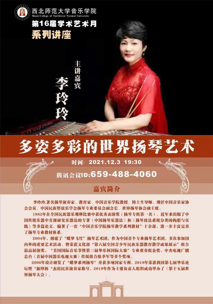 第16届学术艺术月系列讲座 —— 李玲玲《多姿多彩的世界扬琴艺术》